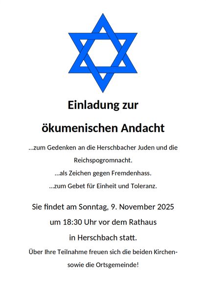 Aktuelles · 03. November 2025 Einladung zum Gedenken an die Reichspogromnacht am 09.11.2025 tagPlaceholderTags: