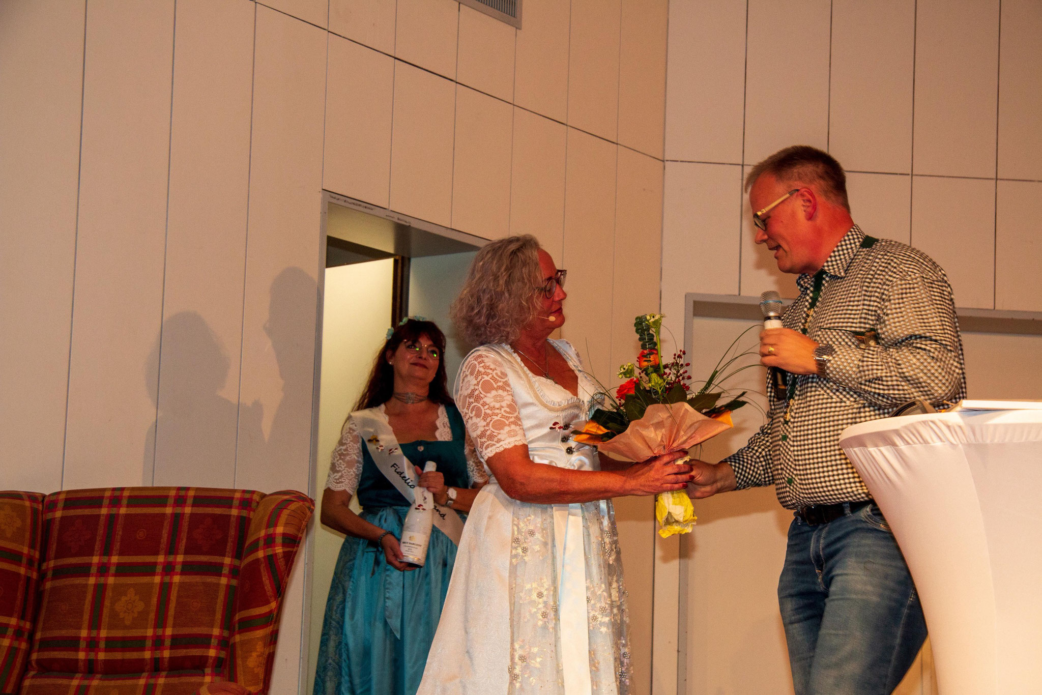 Petra Stahl begrüßte die Gäste als Tilly und führte im Anschluss durch das Programm. Im Namen der Ortsgemeinde und unserer anderen Vereine gratulierte ich den Möhnen.