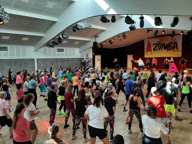 Am Sonntag, 14.09., tönten ungewöhnliche Klänge aus unsrer Festhalle: Das Herschbacher Kulturkomitee und Zumba-Trainer Patrick Schmidt luden zur ersten Herschbacher Zumba-Party ein. Vormittags fand ein Trainer-Workshop mit Zumba-Choreografin Alice Kollmann aus Königswinter statt, in der sie 30 Zumba-Trainern und -Trainerinnen aus dem näheren und weiteren Umkreis vier neue Choreographien beibrachte. Anschließend fand nachmittags die Party für Alle statt. Alice und ein 7-köpfiges lokales Trainerteam brachten rund 180 Teilnehmende mit Musik aus aller Welt wie Merengue, Salsa, Cumbia, Reggaeton, Afrobeats, Bellydance, Brazilian Funk, Bachata, Drum'n'Bass, K-Pop und auch Kölschen Tön ordentlich ins Schwitzen. Am Ende zeigten sich alle restlos begeistert und eine Fortsetzung in 2026 ist bereits in Planung.